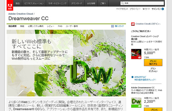 Adobe Dreamweaver の新バージョン「Dreamweaver CC」が公開されました。