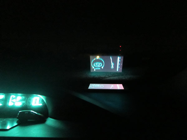 自動車のフロントガラスは2枚がくっついてる合わせガラスらしいので、反射した画面は二重になって見えます。