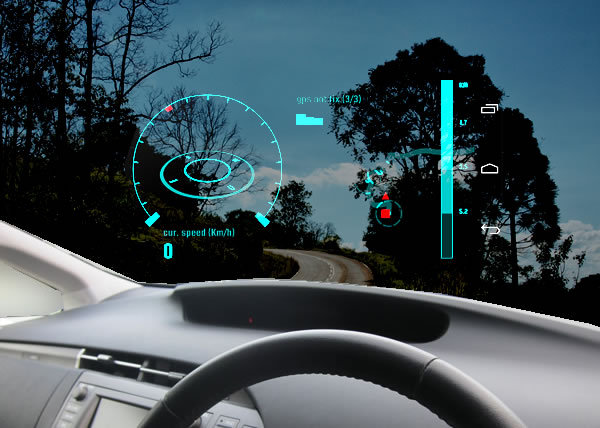 プリウス PHV にも搭載されている HUD(ヘッドアップディスプレイ)。