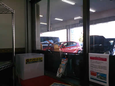 そんなわけで、その場で番号札を発行され、車は隣接されたドック行き。