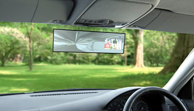 バックミラーの中にモニタが浮かんで表示されているのです。