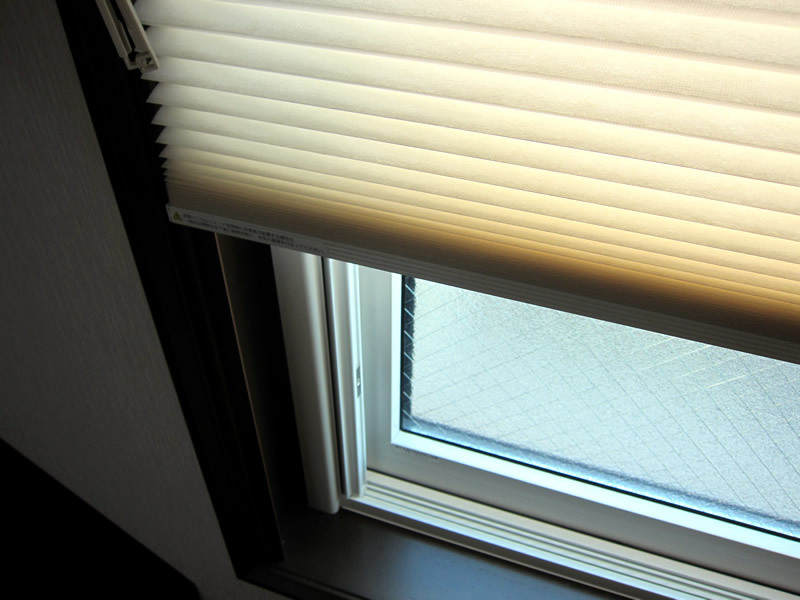 ハニカムシェードを装備する判断基準としては、「カーテンを付けるほど必要のない部分の窓」でした。