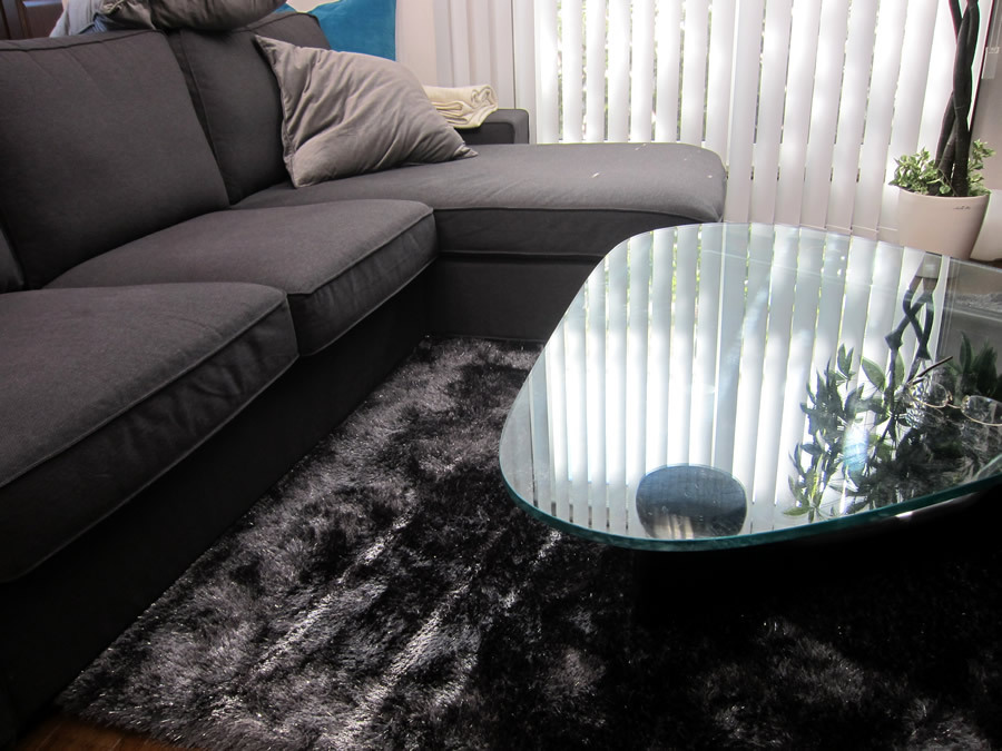 今回購入したブラックのラグなのですが、単純に黒系なだけだと面白くないなぁと色々と考えてて、それがなかなか見つからない理由のひとつでもあったのですが。