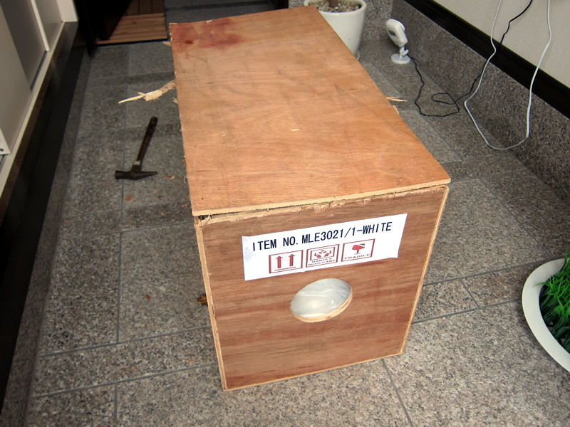 購入してから後悔したのは、配送のお兄さんも困り気味で運んできた、この木箱。