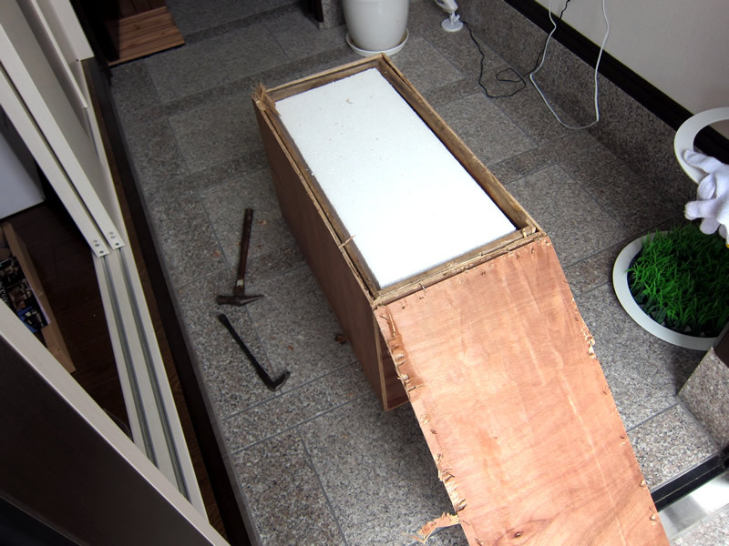 ちなみに木箱の中の白い物体は発砲スチロールで、しかも安い発泡スチロールでボロボロと崩れるので処理に困りました。