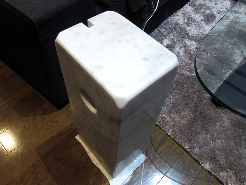 木箱の中には、白い大理石が1つだけ。これが 60kg の土台です。