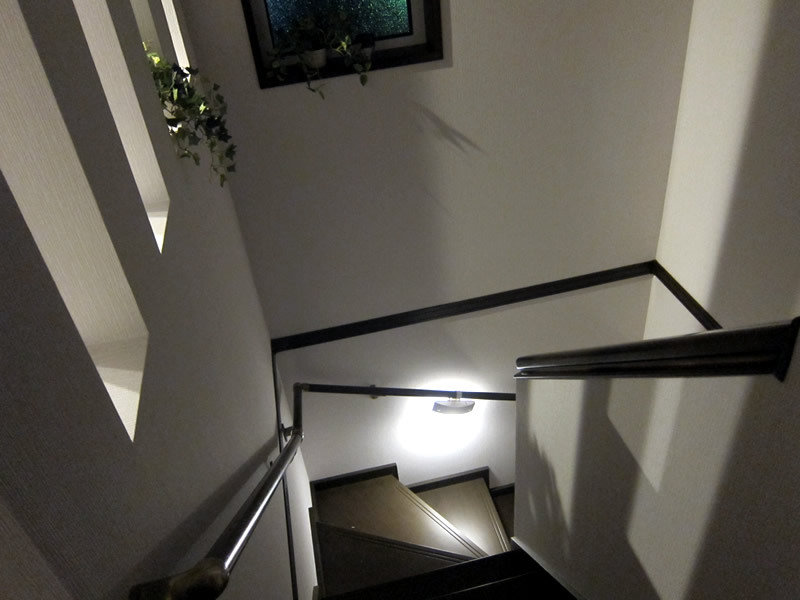 階段は通り過ぎるだけの場所なので、スイッチをぱちんと入れずに通過してしまうことも多いのですが、足元が暗いとやっぱり危ないです。なので、人を感知したら勝手に点灯して、自動で消灯してくれる機能が、やっぱり欲しかった。