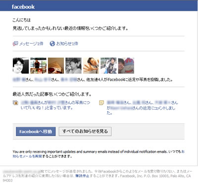 Facebookって、1週間くらいログインしないと通知くるんですね。