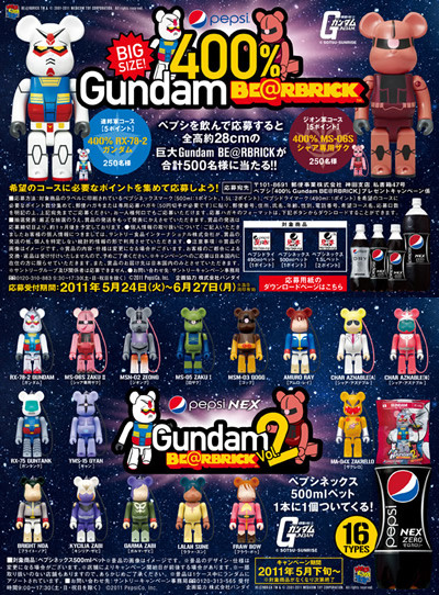 昨年にもあったBE@RBRICKストラップがもらえる「PEPSI NEX ZERO『ガンダム BE@RBRICK オンパックキャンペーン』」の第2弾がはじまったみたい。